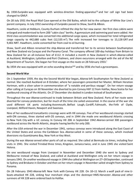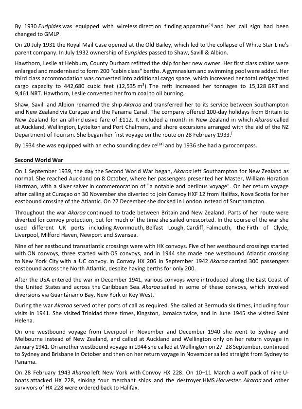The first 4 frames tell the story of the ship from it's construction in 1914, the First World War, the Second World War and its eventual scrapping in 1954.
