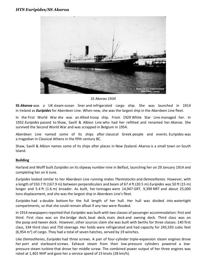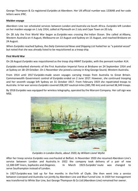 This month's feature tells the story of HTS (His Majesty's Troop Ship) Euripides. The ship the 1st Battalion sailed aboard from Devonport to Egypt in July 1915 on their way to Suvla Bay.