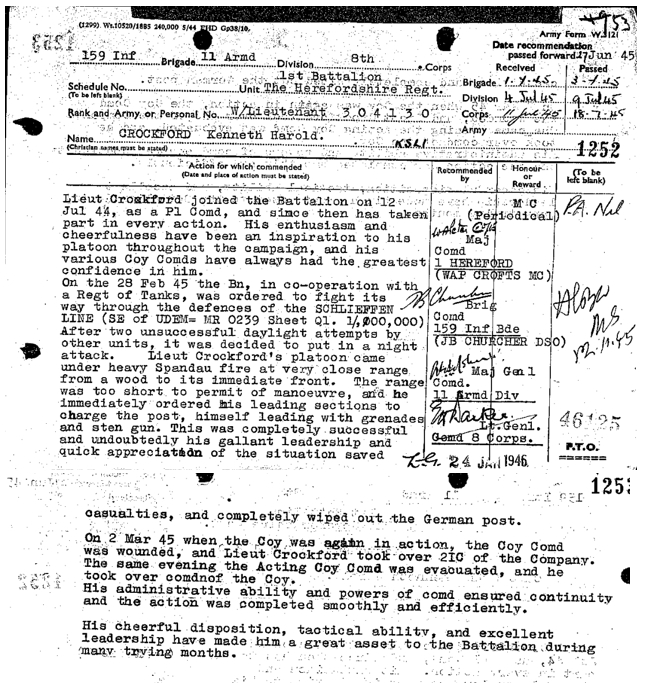 Ken was an officer who joined the 1st Battalion shortly after it arrive over the beaches in Normandy. He continued to serve with them for the remainder of the war. He remained a regular soldier after the war transferring to the Royal Army Service Corps (RASC) and latterly the Royal Corps of Transport (RCT).