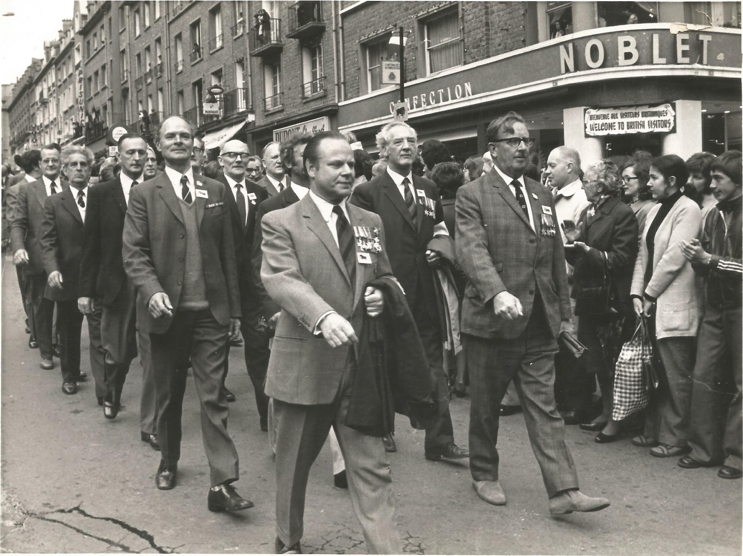 One morning, after sleeping in a farm, they woke to find their German guards gone. Fighting was still going on all about them when they spotted, what they thought were German tanks – they turned out to be American which they greeted enthusiastically. They were told to keep walking Westwards to meet the main Allied Forces. This was quite an ad hoc journey with stories of commandeering a farm tractor and trailer and even ‘borrowing’ an American truck – along the route ‘scrounging’ food and drink from American units and canteens.