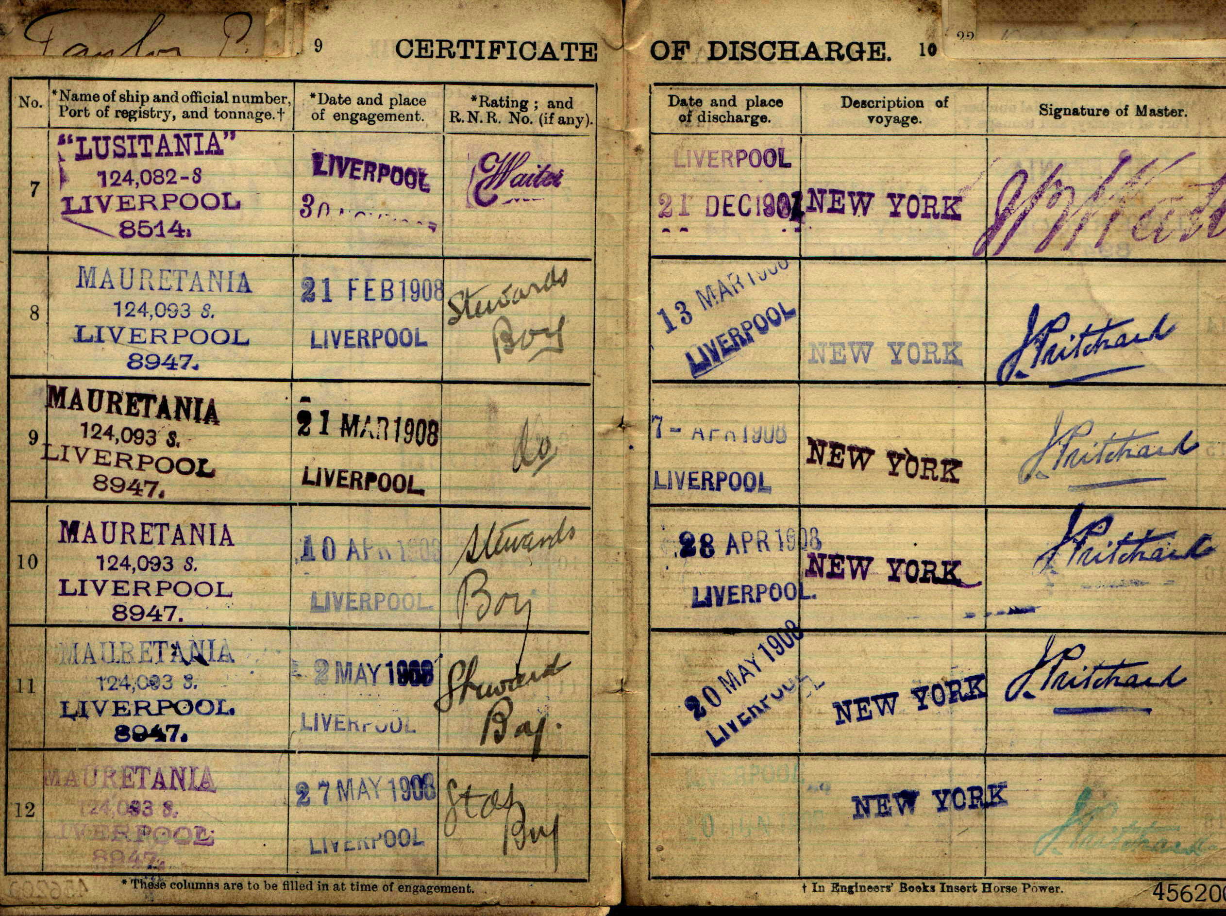 Charles Percy Taylor was born in Ledbury in 1891; he was the only child of Charles and Hannah. In 1907 he left home and served as a steward/waiter on the North Atlantic sailing route (ran away to sea(?)). he served on the Lusitania and the Mauretania on trips to New York.