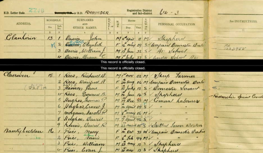 It is noted that he is now a Special Constable with Radnorshire - this service entitled him to the Defence Medal and the Special Constabulary Medal.