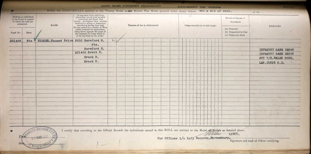 8210 Private Thomas Price HUGHES