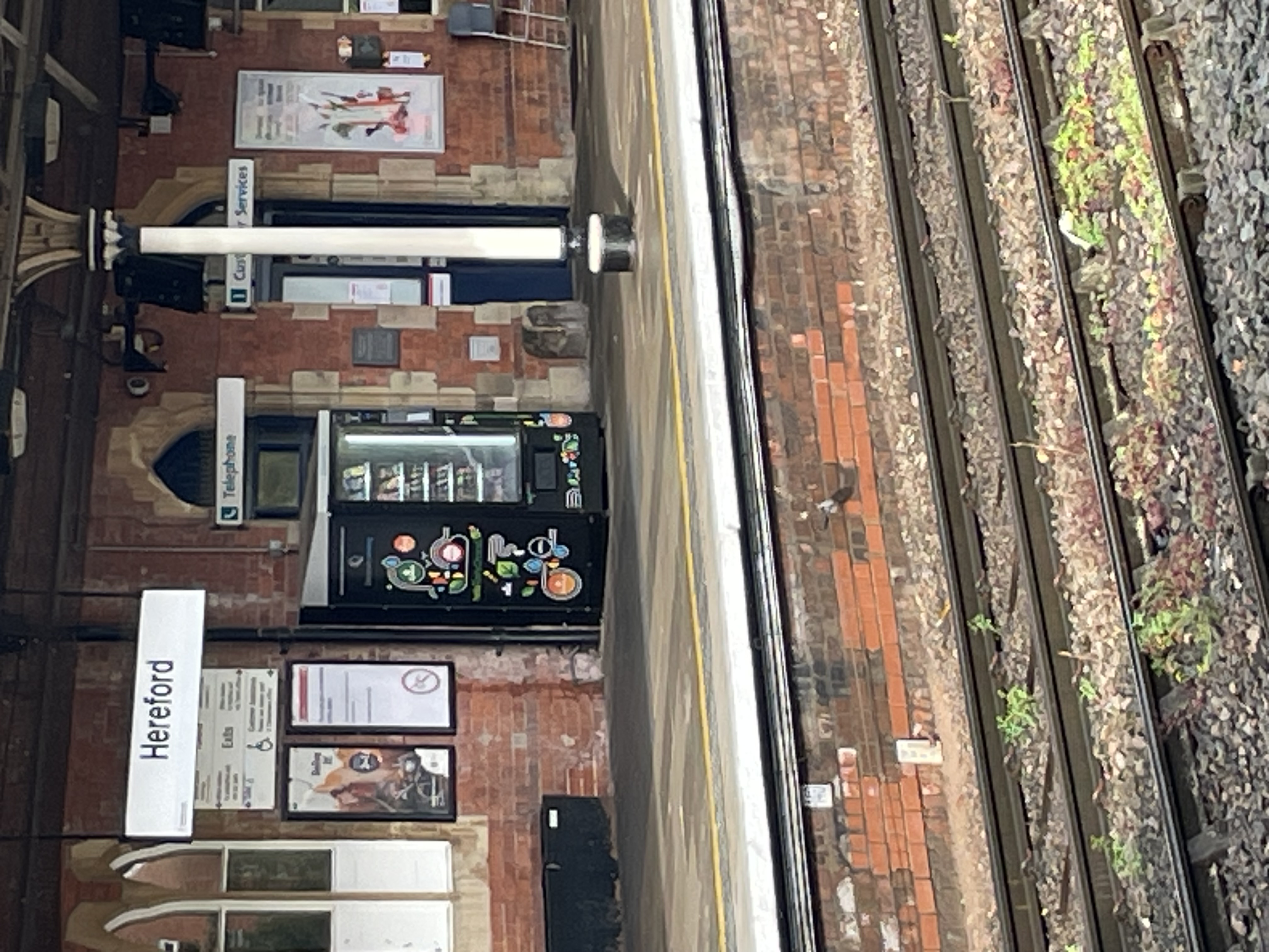 The then phot shows in the background the Wymans kiosk - almost every station of any size had either a Wymans or a WH Smith kiosk selling tobacco products, newspapers and confectionery. Almost all have now gone except for the vary large stations - many replaced by a vending machine as at Hereford.
