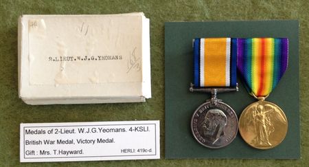He served with the Battalion at Suvla Bay as a signaller and was wounded by a bullet in the foot and was evacuated to England, He recovered and went through the reinforcement process with the 2nd Battalion before rejoining the 1st Battalion in Egypt. He later transferred to the Imperial Camel Corps and then to the Royal Flying Corps which became the Royal Air Force. His service in the First World War saw him awarded the 1914/15 Star (named Herefordshire Regiment), British War (named RAF) and Victory (named RAF) Medals.